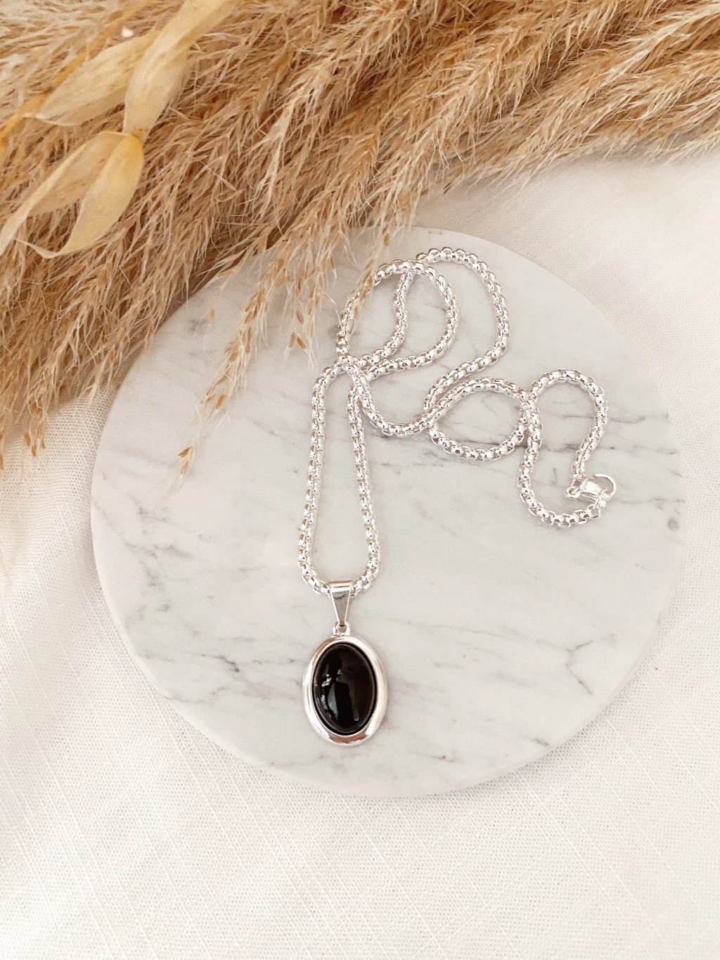 Cadena de 45cm de largo con piedra natural engarzada en Plata*.