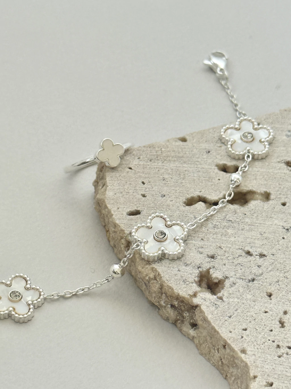 Material: aPulsera de Acero Quirurgico Blanco con dijes de flores en nacar.